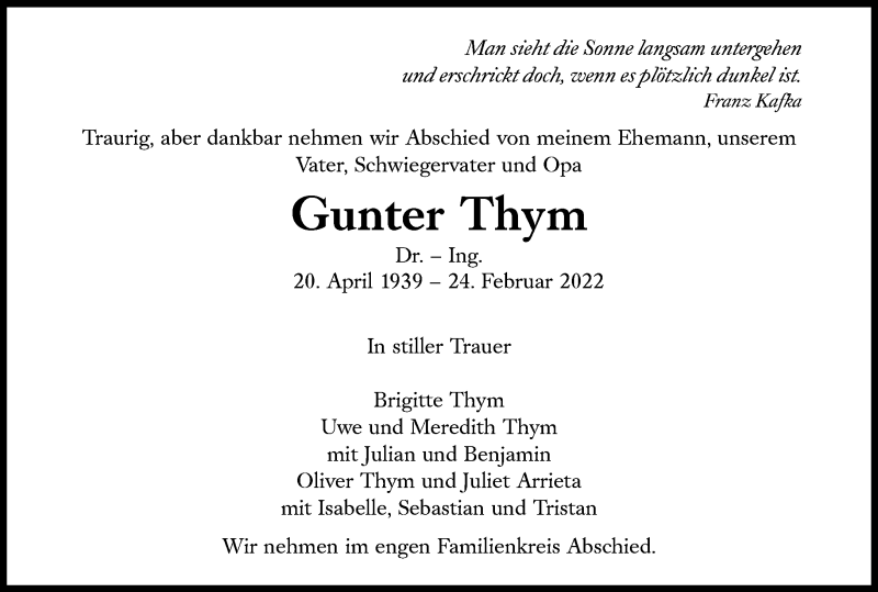 Hier finden Sie alle Traueranzeigen aus der Zeitung, die bisher für Gunter Thym erschienen sind. Weitere Traueranzeigen, die in der Zeitung erscheinen, werden hier ebenfalls aufgelistet