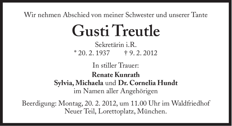 Hier finden Sie alle Traueranzeigen aus der Zeitung, die bisher für Gusti Treutle erschienen sind. Weitere Traueranzeigen, die in der Zeitung erscheinen, werden hier ebenfalls aufgelistet