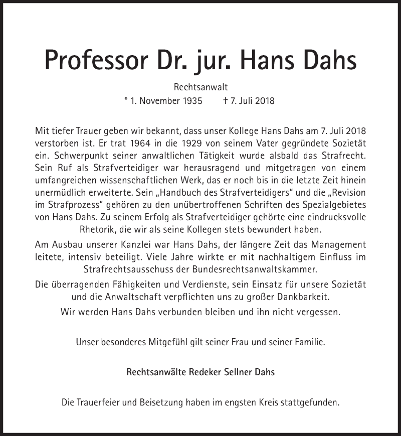 Hier finden Sie alle Traueranzeigen aus der Zeitung, die bisher für Hans Dahs erschienen sind. Weitere Traueranzeigen, die in der Zeitung erscheinen, werden hier ebenfalls aufgelistet