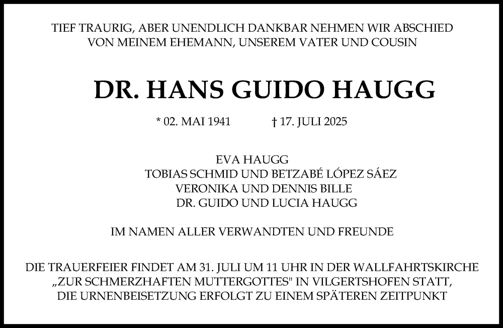 Hier finden Sie alle Traueranzeigen aus der Zeitung, die bisher für Hans Guido Haugg erschienen sind. Weitere Traueranzeigen, die in der Zeitung erscheinen, werden hier ebenfalls aufgelistet