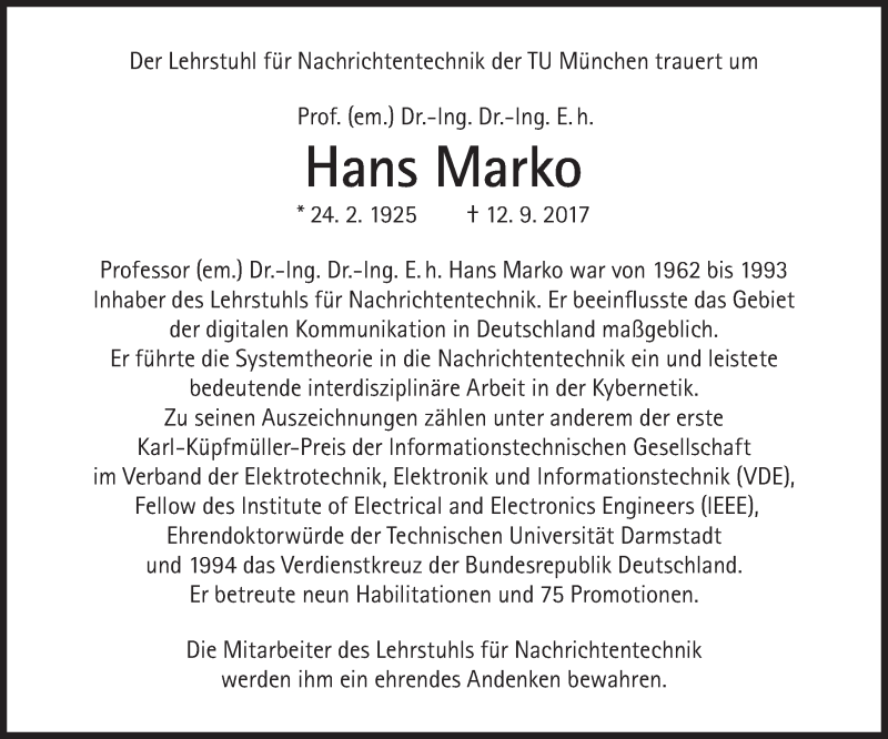 Hier finden Sie alle Traueranzeigen aus der Zeitung, die bisher für Hans Marko erschienen sind. Weitere Traueranzeigen, die in der Zeitung erscheinen, werden hier ebenfalls aufgelistet