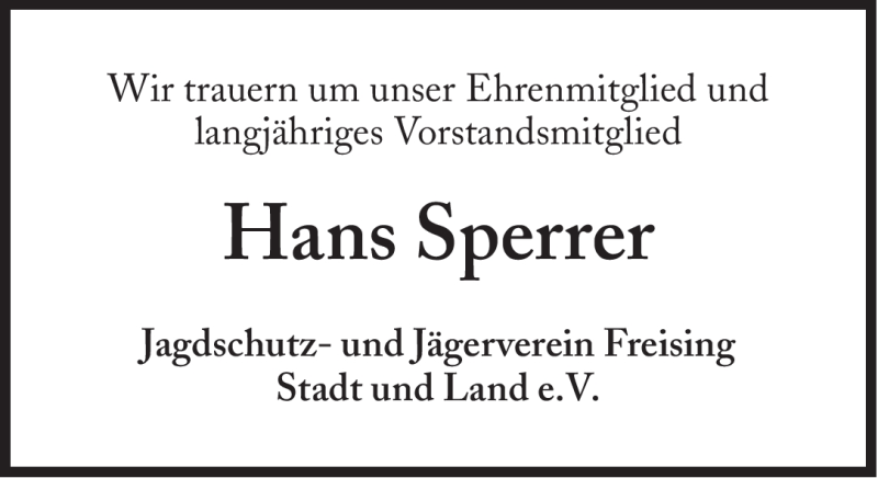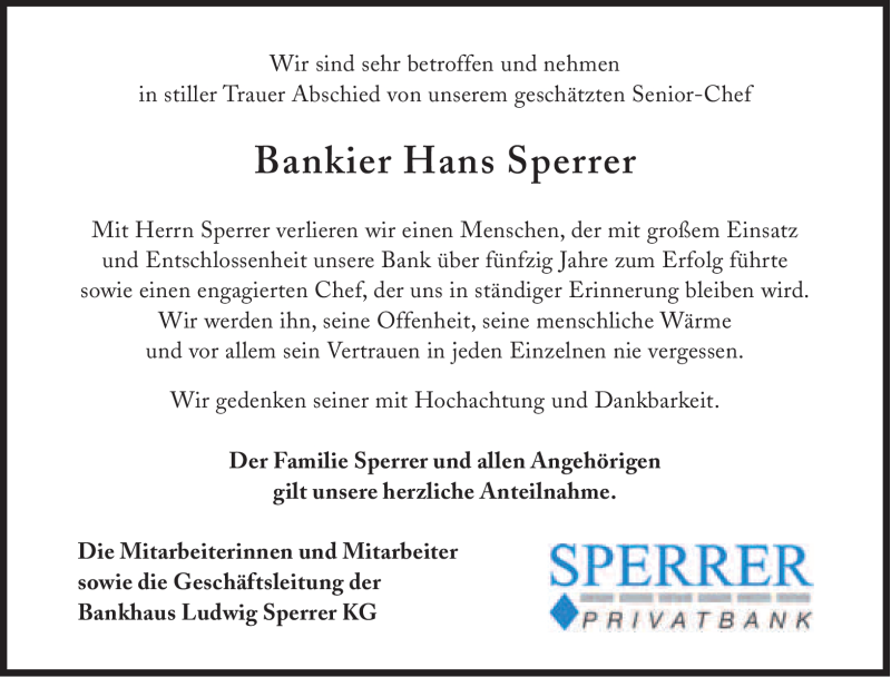 Hier finden Sie alle Traueranzeigen aus der Zeitung, die bisher für Hans Sperrer erschienen sind. Weitere Traueranzeigen, die in der Zeitung erscheinen, werden hier ebenfalls aufgelistet