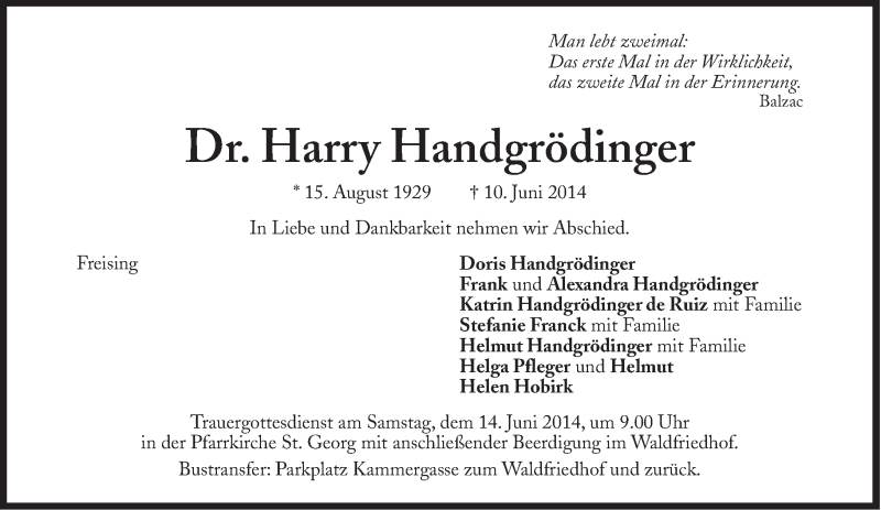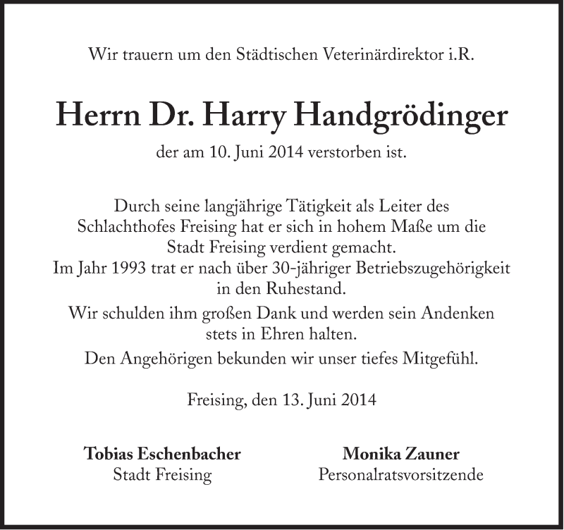 Hier finden Sie alle Traueranzeigen aus der Zeitung, die bisher für Dr. Harry Handgrödinger erschienen sind. Weitere Traueranzeigen, die in der Zeitung erscheinen, werden hier ebenfalls aufgelistet