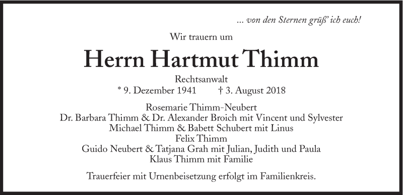 Hier finden Sie alle Traueranzeigen aus der Zeitung, die bisher für Hartmut Thimm erschienen sind. Weitere Traueranzeigen, die in der Zeitung erscheinen, werden hier ebenfalls aufgelistet