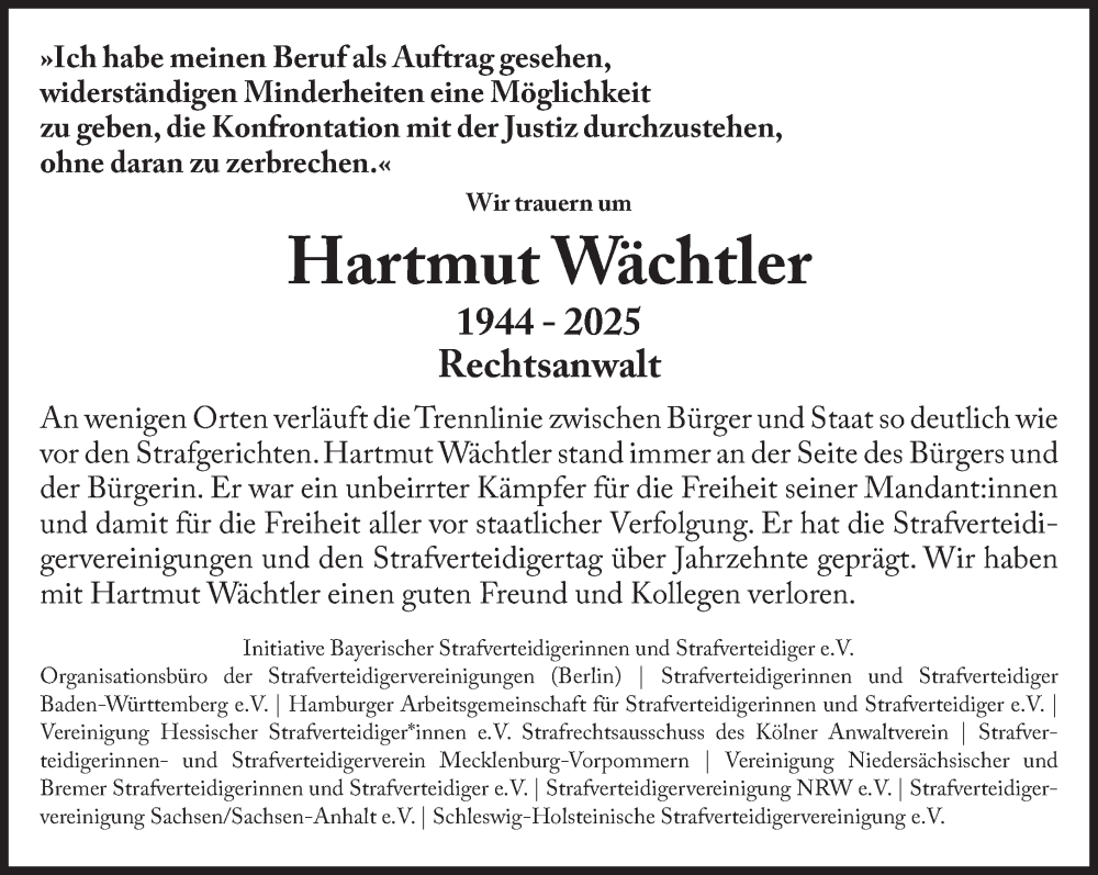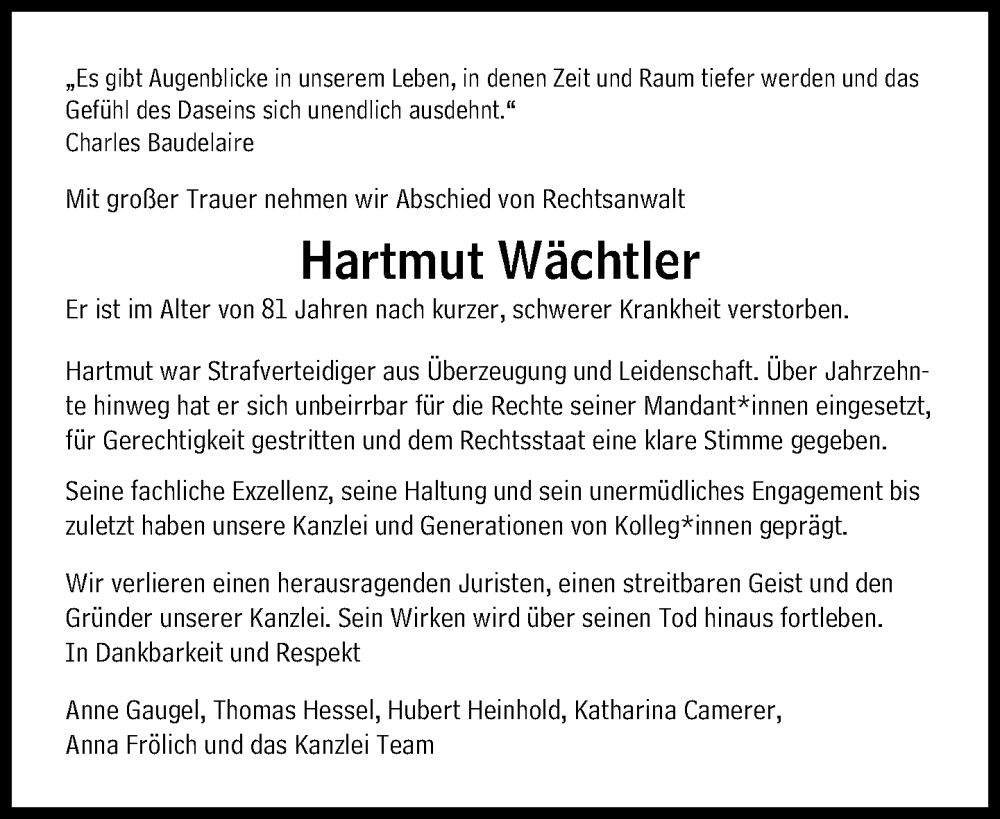Hier finden Sie alle Traueranzeigen aus der Zeitung, die bisher für Hartmut Wächtler erschienen sind. Weitere Traueranzeigen, die in der Zeitung erscheinen, werden hier ebenfalls aufgelistet