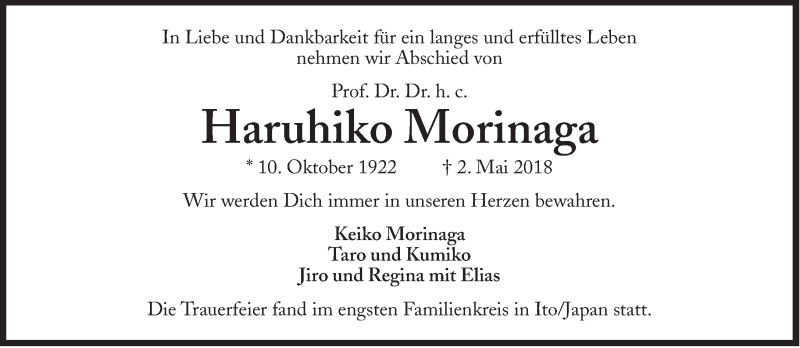 Hier finden Sie alle Traueranzeigen aus der Zeitung, die bisher für Haruhiko Morinaga erschienen sind. Weitere Traueranzeigen, die in der Zeitung erscheinen, werden hier ebenfalls aufgelistet