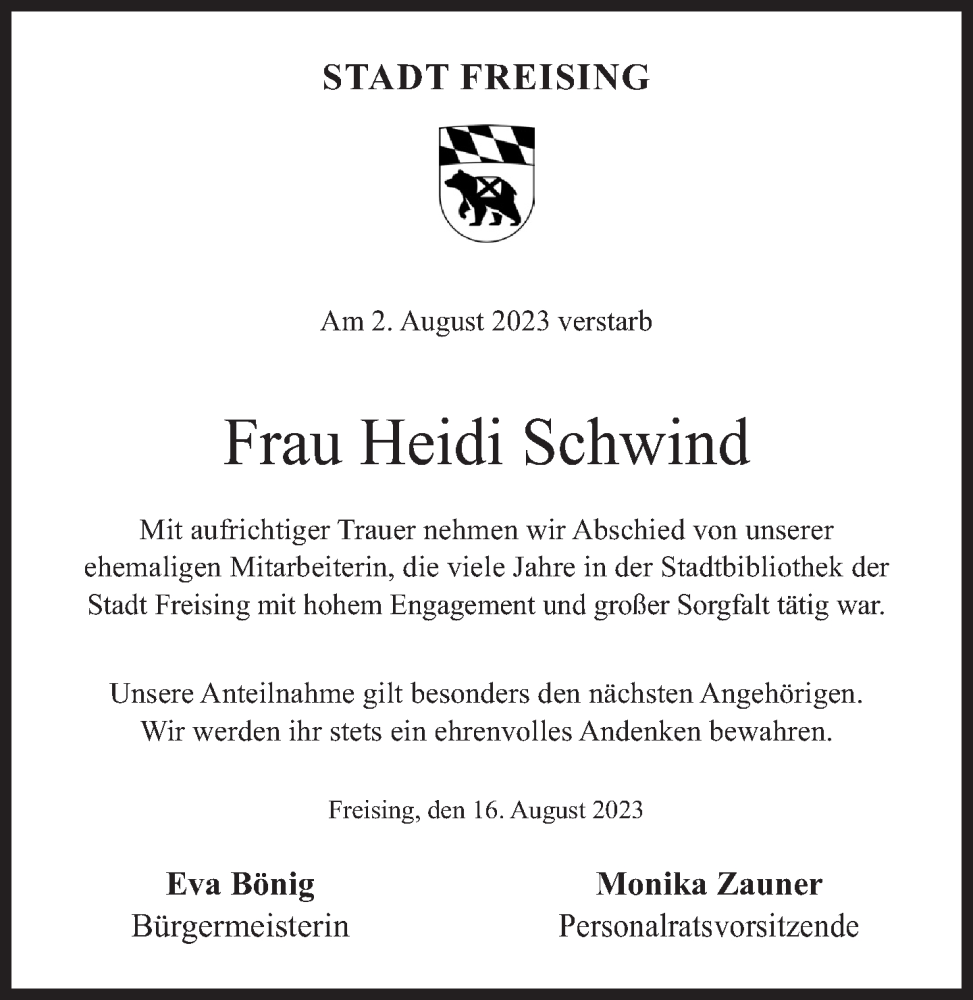 Hier finden Sie alle Traueranzeigen aus der Zeitung, die bisher für Heidi Schwind erschienen sind. Weitere Traueranzeigen, die in der Zeitung erscheinen, werden hier ebenfalls aufgelistet