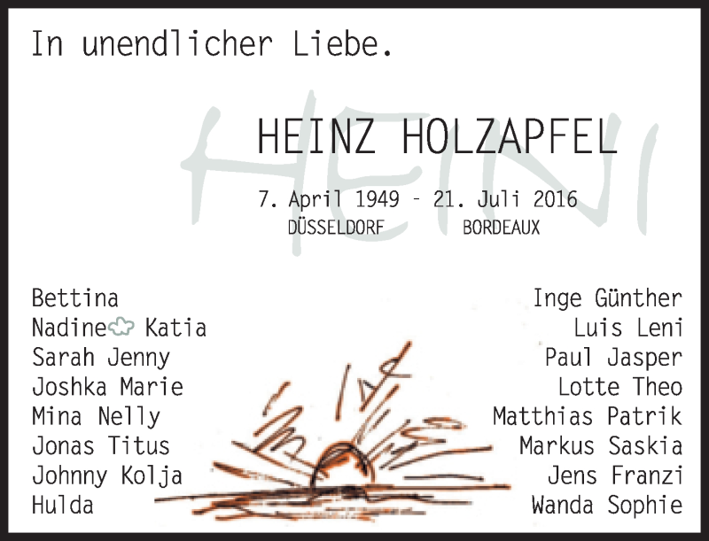 Hier finden Sie alle Traueranzeigen aus der Zeitung, die bisher für Heinz Holzapfel erschienen sind. Weitere Traueranzeigen, die in der Zeitung erscheinen, werden hier ebenfalls aufgelistet