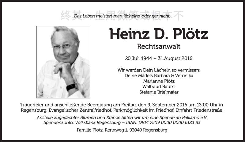 Hier finden Sie alle Traueranzeigen aus der Zeitung, die bisher für Heinz D. Plötz erschienen sind. Weitere Traueranzeigen, die in der Zeitung erscheinen, werden hier ebenfalls aufgelistet