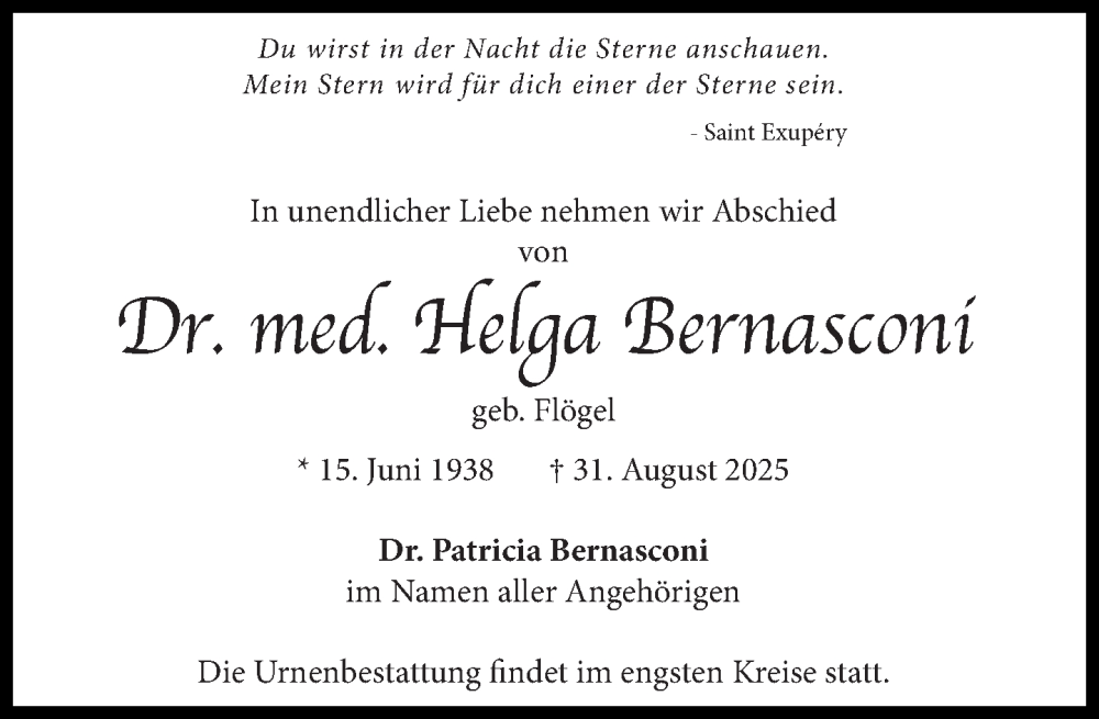 Hier finden Sie alle Traueranzeigen aus der Zeitung, die bisher für Helga Bernasconi erschienen sind. Weitere Traueranzeigen, die in der Zeitung erscheinen, werden hier ebenfalls aufgelistet