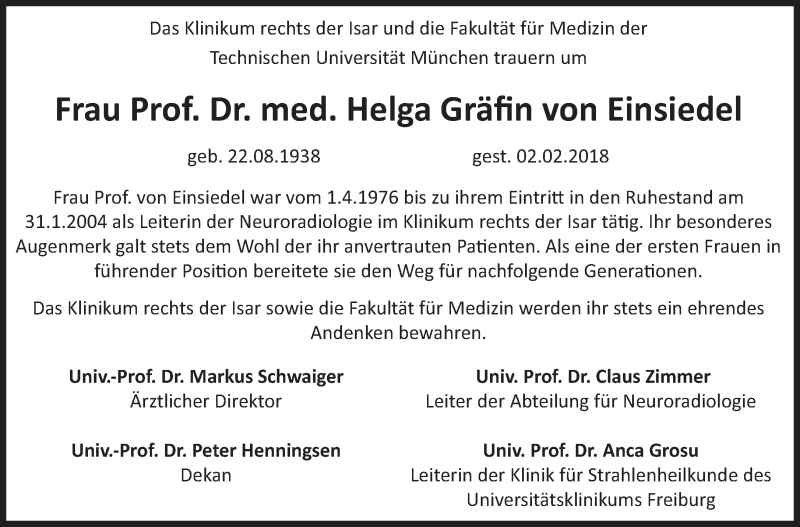 Hier finden Sie alle Traueranzeigen aus der Zeitung, die bisher für Helga von Einsiedel erschienen sind. Weitere Traueranzeigen, die in der Zeitung erscheinen, werden hier ebenfalls aufgelistet