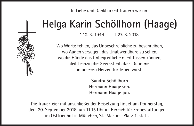 Hier finden Sie alle Traueranzeigen aus der Zeitung, die bisher für Helga Karin Schöllhorn erschienen sind. Weitere Traueranzeigen, die in der Zeitung erscheinen, werden hier ebenfalls aufgelistet