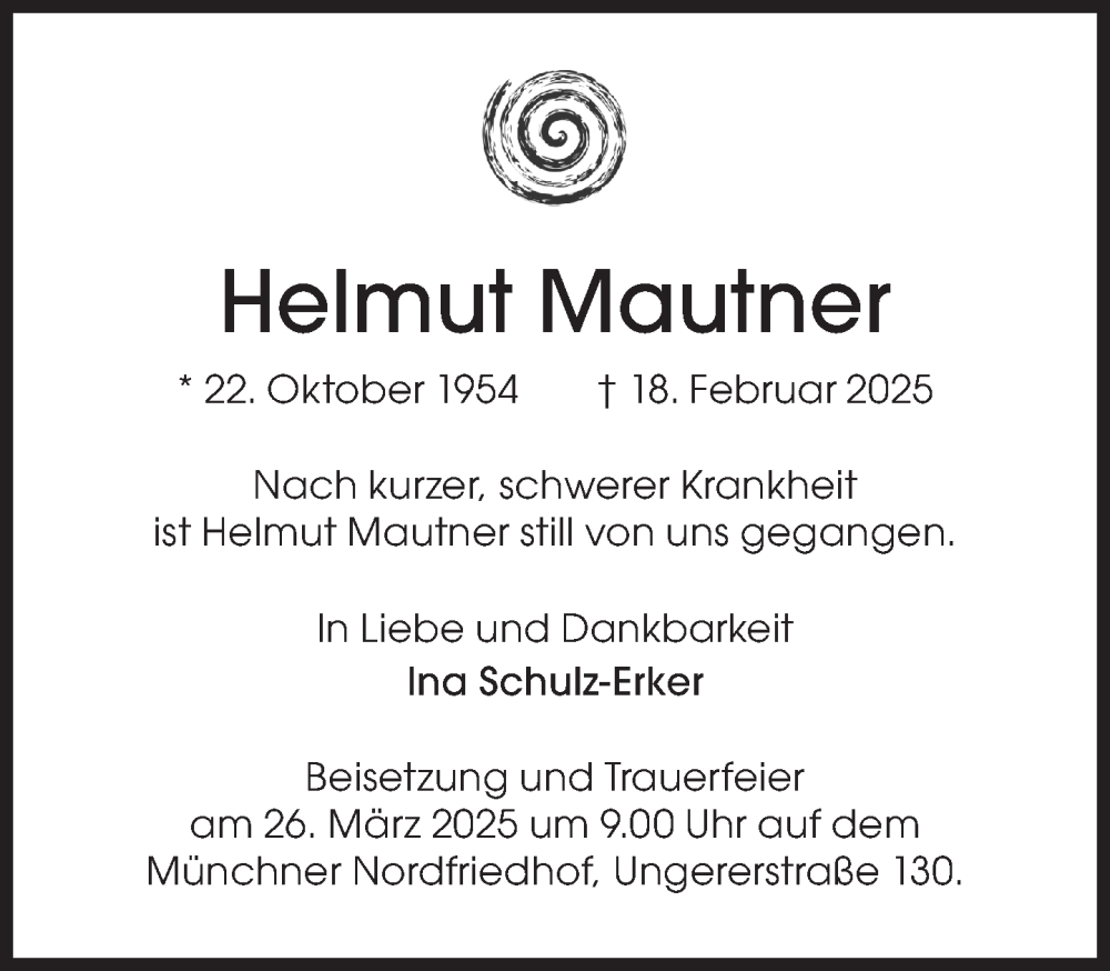 Hier finden Sie alle Traueranzeigen aus der Zeitung, die bisher für Helmut Mautner erschienen sind. Weitere Traueranzeigen, die in der Zeitung erscheinen, werden hier ebenfalls aufgelistet