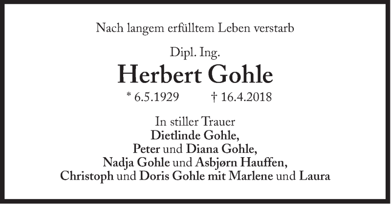 Hier finden Sie alle Traueranzeigen aus der Zeitung, die bisher für Herbert Gohle erschienen sind. Weitere Traueranzeigen, die in der Zeitung erscheinen, werden hier ebenfalls aufgelistet