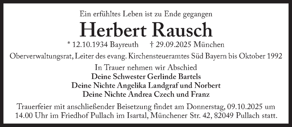 Hier finden Sie alle Traueranzeigen aus der Zeitung, die bisher für Herbert Rausch erschienen sind. Weitere Traueranzeigen, die in der Zeitung erscheinen, werden hier ebenfalls aufgelistet