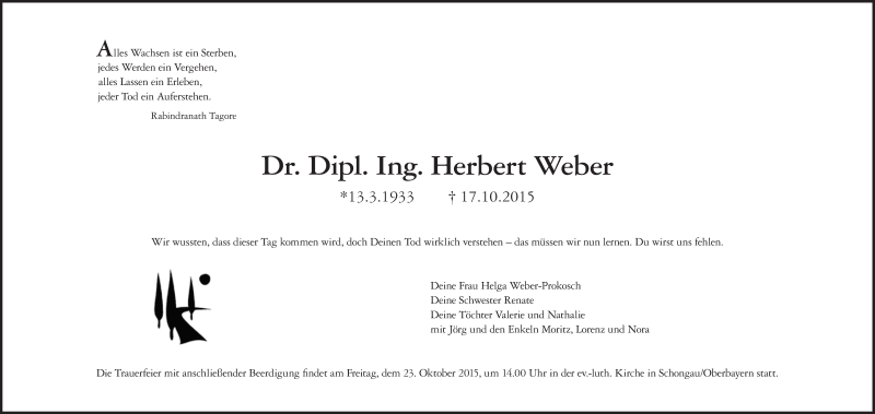 Hier finden Sie alle Traueranzeigen aus der Zeitung, die bisher für Herbert Weber erschienen sind. Weitere Traueranzeigen, die in der Zeitung erscheinen, werden hier ebenfalls aufgelistet