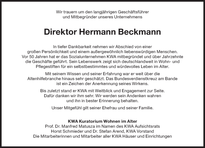 Hier finden Sie alle Traueranzeigen aus der Zeitung, die bisher für Hermann Beckmann erschienen sind. Weitere Traueranzeigen, die in der Zeitung erscheinen, werden hier ebenfalls aufgelistet