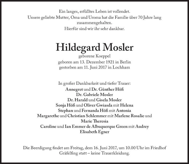 Hier finden Sie alle Traueranzeigen aus der Zeitung, die bisher für Hildegard Mosler erschienen sind. Weitere Traueranzeigen, die in der Zeitung erscheinen, werden hier ebenfalls aufgelistet