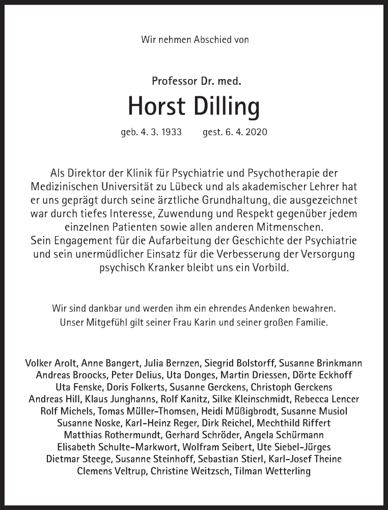 Hier finden Sie alle Traueranzeigen aus der Zeitung, die bisher für Horst Dilling erschienen sind. Weitere Traueranzeigen, die in der Zeitung erscheinen, werden hier ebenfalls aufgelistet