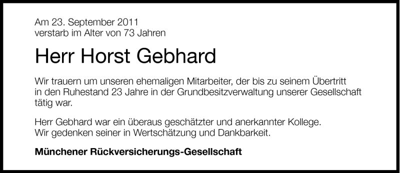 Hier finden Sie alle Traueranzeigen aus der Zeitung, die bisher für Horst Gebhard erschienen sind. Weitere Traueranzeigen, die in der Zeitung erscheinen, werden hier ebenfalls aufgelistet