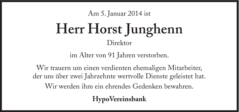 Hier finden Sie alle Traueranzeigen aus der Zeitung, die bisher für Horst Junghenn erschienen sind. Weitere Traueranzeigen, die in der Zeitung erscheinen, werden hier ebenfalls aufgelistet