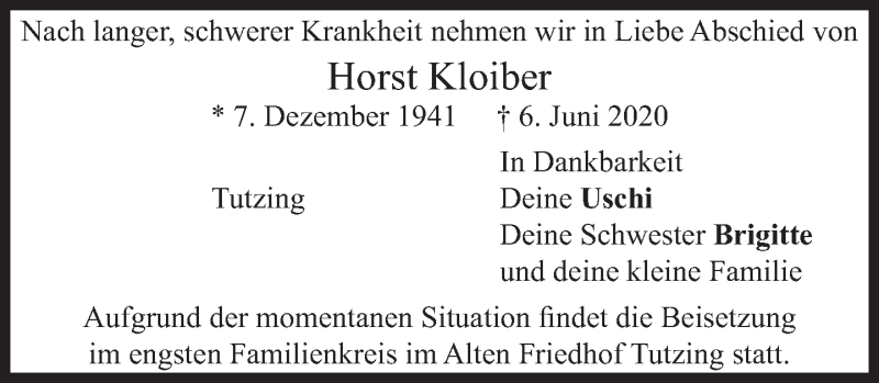 Hier finden Sie alle Traueranzeigen aus der Zeitung, die bisher für Horst Kloiber erschienen sind. Weitere Traueranzeigen, die in der Zeitung erscheinen, werden hier ebenfalls aufgelistet