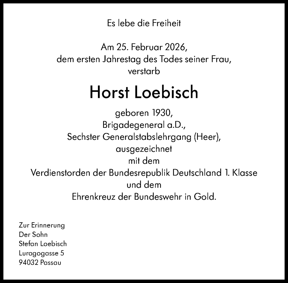Hier finden Sie alle Traueranzeigen aus der Zeitung, die bisher für Horst Loebisch erschienen sind. Weitere Traueranzeigen, die in der Zeitung erscheinen, werden hier ebenfalls aufgelistet