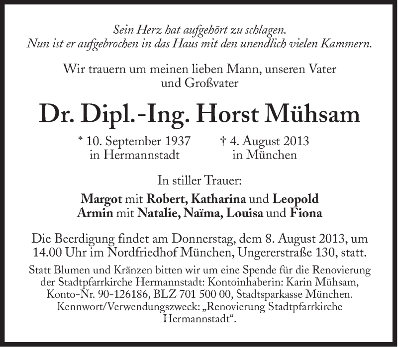 Hier finden Sie alle Traueranzeigen aus der Zeitung, die bisher für Horst Mühsam erschienen sind. Weitere Traueranzeigen, die in der Zeitung erscheinen, werden hier ebenfalls aufgelistet