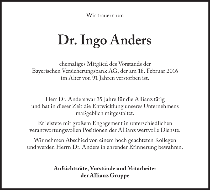 Hier finden Sie alle Traueranzeigen aus der Zeitung, die bisher für Ingo Anders erschienen sind. Weitere Traueranzeigen, die in der Zeitung erscheinen, werden hier ebenfalls aufgelistet