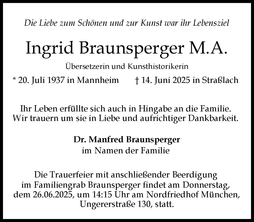 Hier finden Sie alle Traueranzeigen aus der Zeitung, die bisher für Ingrid Braunsperger erschienen sind. Weitere Traueranzeigen, die in der Zeitung erscheinen, werden hier ebenfalls aufgelistet