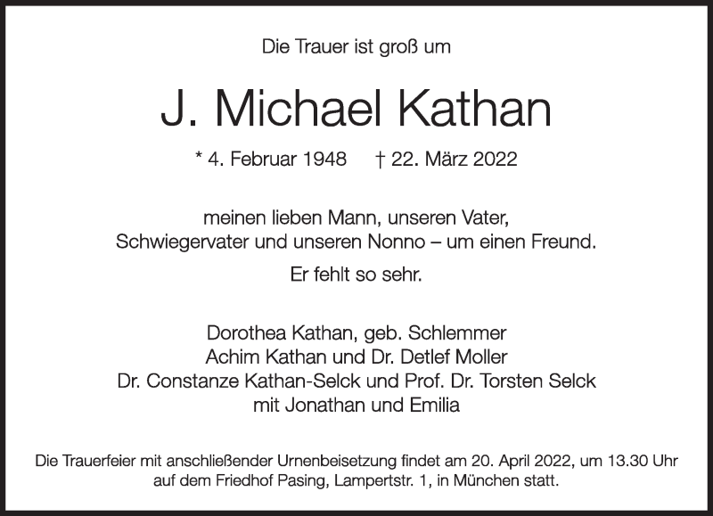 Hier finden Sie alle Traueranzeigen aus der Zeitung, die bisher für J. Michael Kathan erschienen sind. Weitere Traueranzeigen, die in der Zeitung erscheinen, werden hier ebenfalls aufgelistet