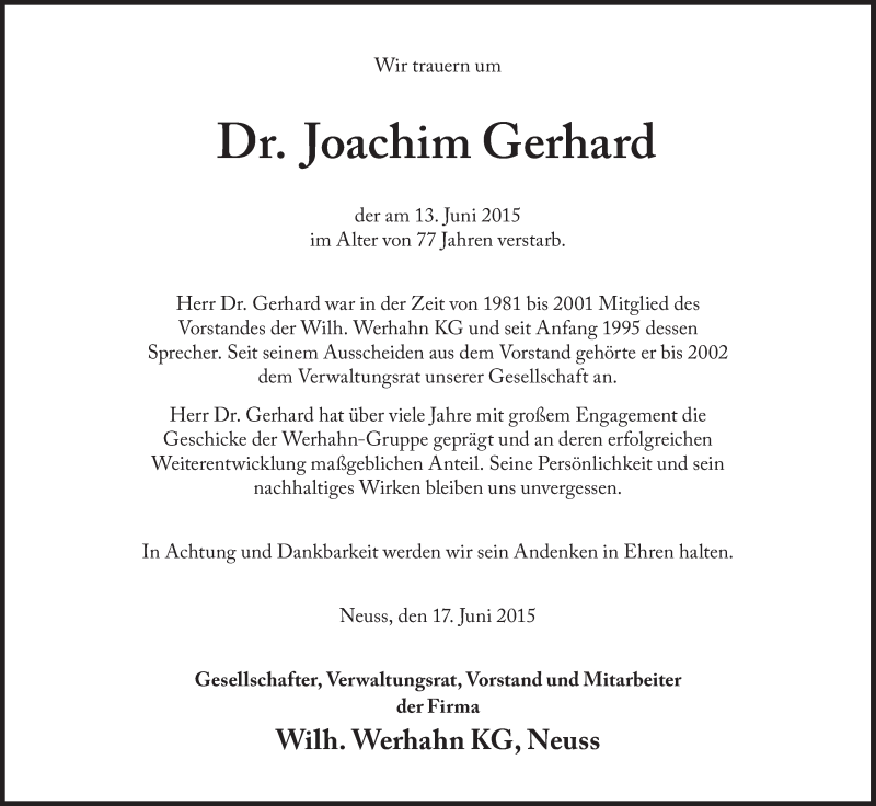 Hier finden Sie alle Traueranzeigen aus der Zeitung, die bisher für Joachim Gerhard erschienen sind. Weitere Traueranzeigen, die in der Zeitung erscheinen, werden hier ebenfalls aufgelistet