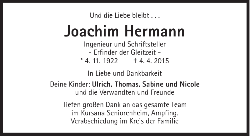 Hier finden Sie alle Traueranzeigen aus der Zeitung, die bisher für Joachim Hermann erschienen sind. Weitere Traueranzeigen, die in der Zeitung erscheinen, werden hier ebenfalls aufgelistet