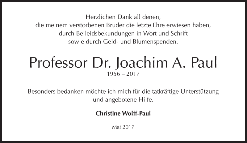 Hier finden Sie alle Traueranzeigen aus der Zeitung, die bisher für Joachim A. Paul erschienen sind. Weitere Traueranzeigen, die in der Zeitung erscheinen, werden hier ebenfalls aufgelistet