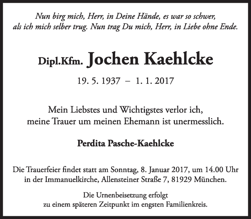 Hier finden Sie alle Traueranzeigen aus der Zeitung, die bisher für Jochen Kaehlcke erschienen sind. Weitere Traueranzeigen, die in der Zeitung erscheinen, werden hier ebenfalls aufgelistet