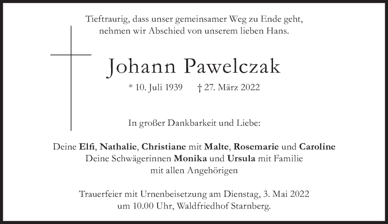 Hier finden Sie alle Traueranzeigen aus der Zeitung, die bisher für Johann Pawelczak erschienen sind. Weitere Traueranzeigen, die in der Zeitung erscheinen, werden hier ebenfalls aufgelistet