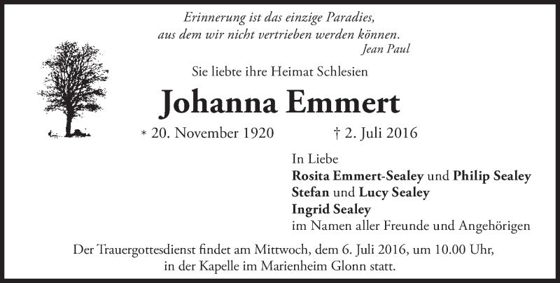 Hier finden Sie alle Traueranzeigen aus der Zeitung, die bisher für Johanna Emmert erschienen sind. Weitere Traueranzeigen, die in der Zeitung erscheinen, werden hier ebenfalls aufgelistet