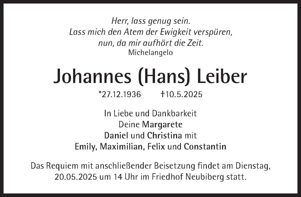Hier finden Sie alle Traueranzeigen aus der Zeitung, die bisher für Johannes Leiber erschienen sind. Weitere Traueranzeigen, die in der Zeitung erscheinen, werden hier ebenfalls aufgelistet
