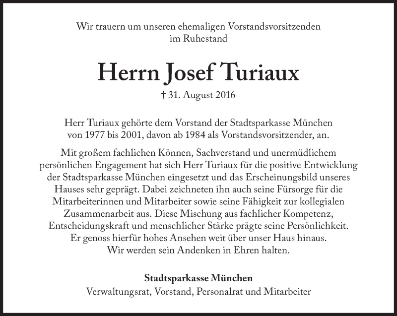 Hier finden Sie alle Traueranzeigen aus der Zeitung, die bisher für Josef Turiaux erschienen sind. Weitere Traueranzeigen, die in der Zeitung erscheinen, werden hier ebenfalls aufgelistet