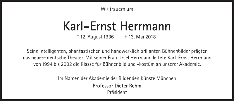 Hier finden Sie alle Traueranzeigen aus der Zeitung, die bisher für Karl-Ernst Herrmann erschienen sind. Weitere Traueranzeigen, die in der Zeitung erscheinen, werden hier ebenfalls aufgelistet