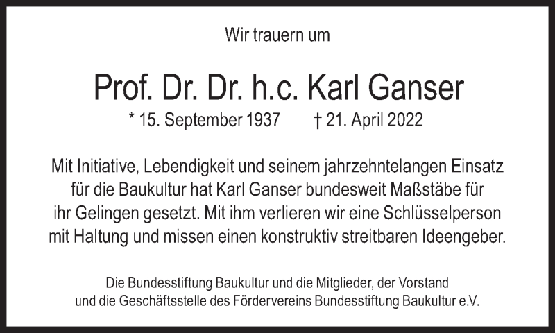 Hier finden Sie alle Traueranzeigen aus der Zeitung, die bisher für Karl Ganser erschienen sind. Weitere Traueranzeigen, die in der Zeitung erscheinen, werden hier ebenfalls aufgelistet