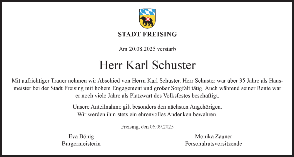 Hier finden Sie alle Traueranzeigen aus der Zeitung, die bisher für Karl Schuster erschienen sind. Weitere Traueranzeigen, die in der Zeitung erscheinen, werden hier ebenfalls aufgelistet