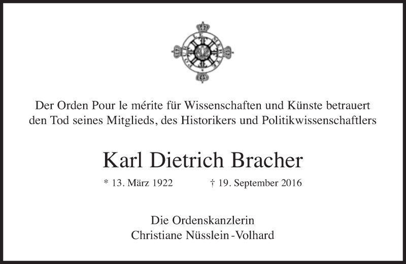 Hier finden Sie alle Traueranzeigen aus der Zeitung, die bisher für Karl Dietrich Bracher erschienen sind. Weitere Traueranzeigen, die in der Zeitung erscheinen, werden hier ebenfalls aufgelistet
