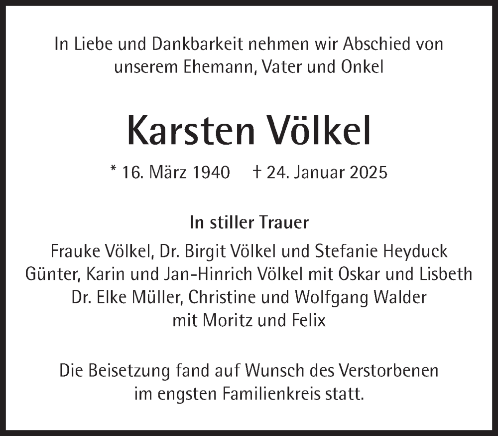 Hier finden Sie alle Traueranzeigen aus der Zeitung, die bisher für Karsten Völkel erschienen sind. Weitere Traueranzeigen, die in der Zeitung erscheinen, werden hier ebenfalls aufgelistet