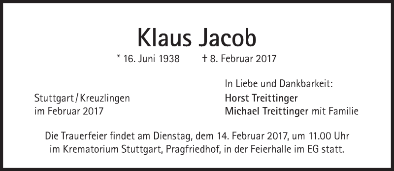 Hier finden Sie alle Traueranzeigen aus der Zeitung, die bisher für Klaus Jacob erschienen sind. Weitere Traueranzeigen, die in der Zeitung erscheinen, werden hier ebenfalls aufgelistet
