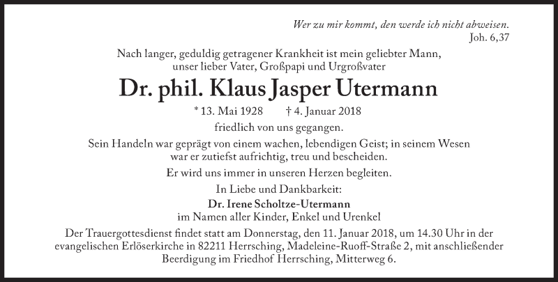 Hier finden Sie alle Traueranzeigen aus der Zeitung, die bisher für Klaus Jasper Utermann erschienen sind. Weitere Traueranzeigen, die in der Zeitung erscheinen, werden hier ebenfalls aufgelistet