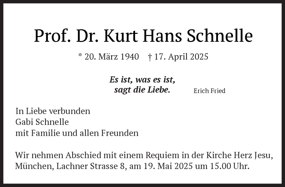 Hier finden Sie alle Traueranzeigen aus der Zeitung, die bisher für Kurt Hans Schnelle erschienen sind. Weitere Traueranzeigen, die in der Zeitung erscheinen, werden hier ebenfalls aufgelistet