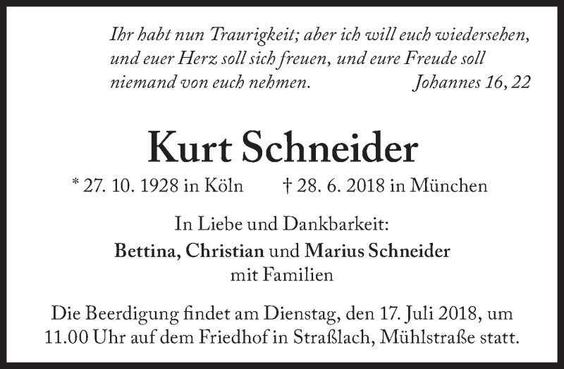 Hier finden Sie alle Traueranzeigen aus der Zeitung, die bisher für Kurt Schneider erschienen sind. Weitere Traueranzeigen, die in der Zeitung erscheinen, werden hier ebenfalls aufgelistet
