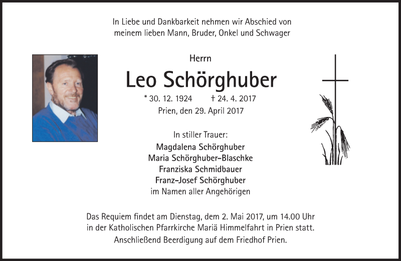 Hier finden Sie alle Traueranzeigen aus der Zeitung, die bisher für Leo Schörghuber erschienen sind. Weitere Traueranzeigen, die in der Zeitung erscheinen, werden hier ebenfalls aufgelistet