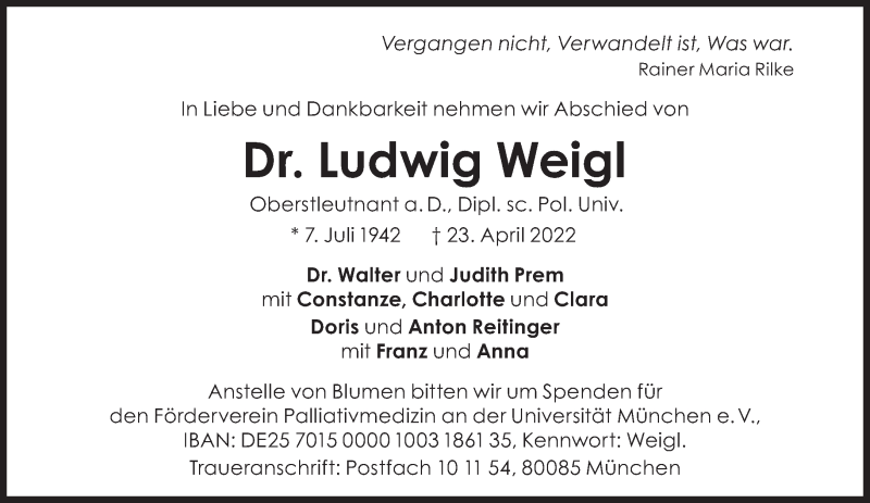 Hier finden Sie alle Traueranzeigen aus der Zeitung, die bisher für Ludwig Weigl erschienen sind. Weitere Traueranzeigen, die in der Zeitung erscheinen, werden hier ebenfalls aufgelistet